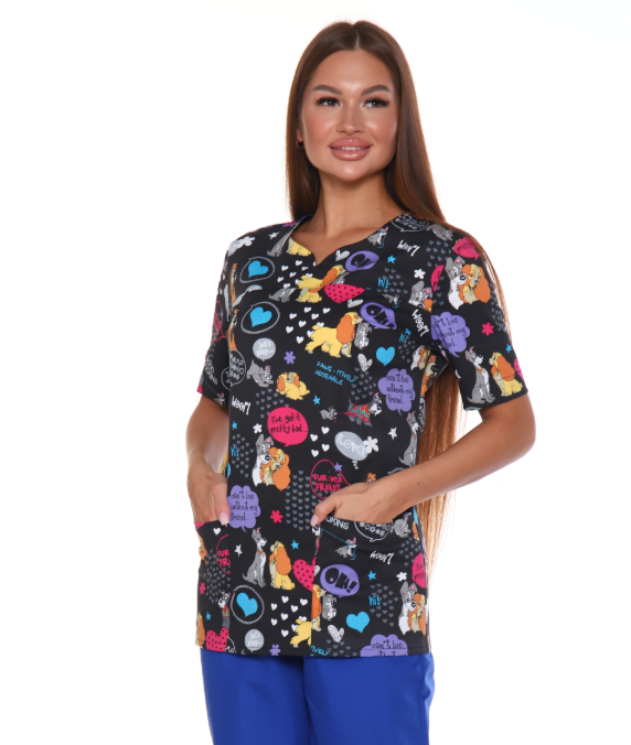 Блуза медицинская женская полуприталенного силуэта с 2-мя карманами, короткий рукав, без воротника с небольшим V-образным вырезом на груди. Практична в сферы салонов красоты, медицинских работников, частных клиник, SPA салонов, клининга.