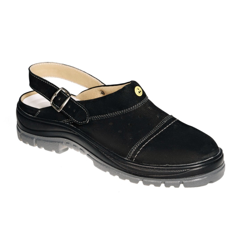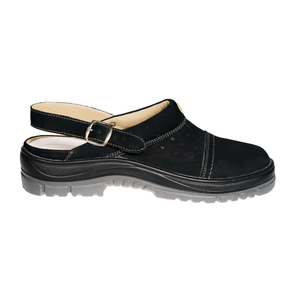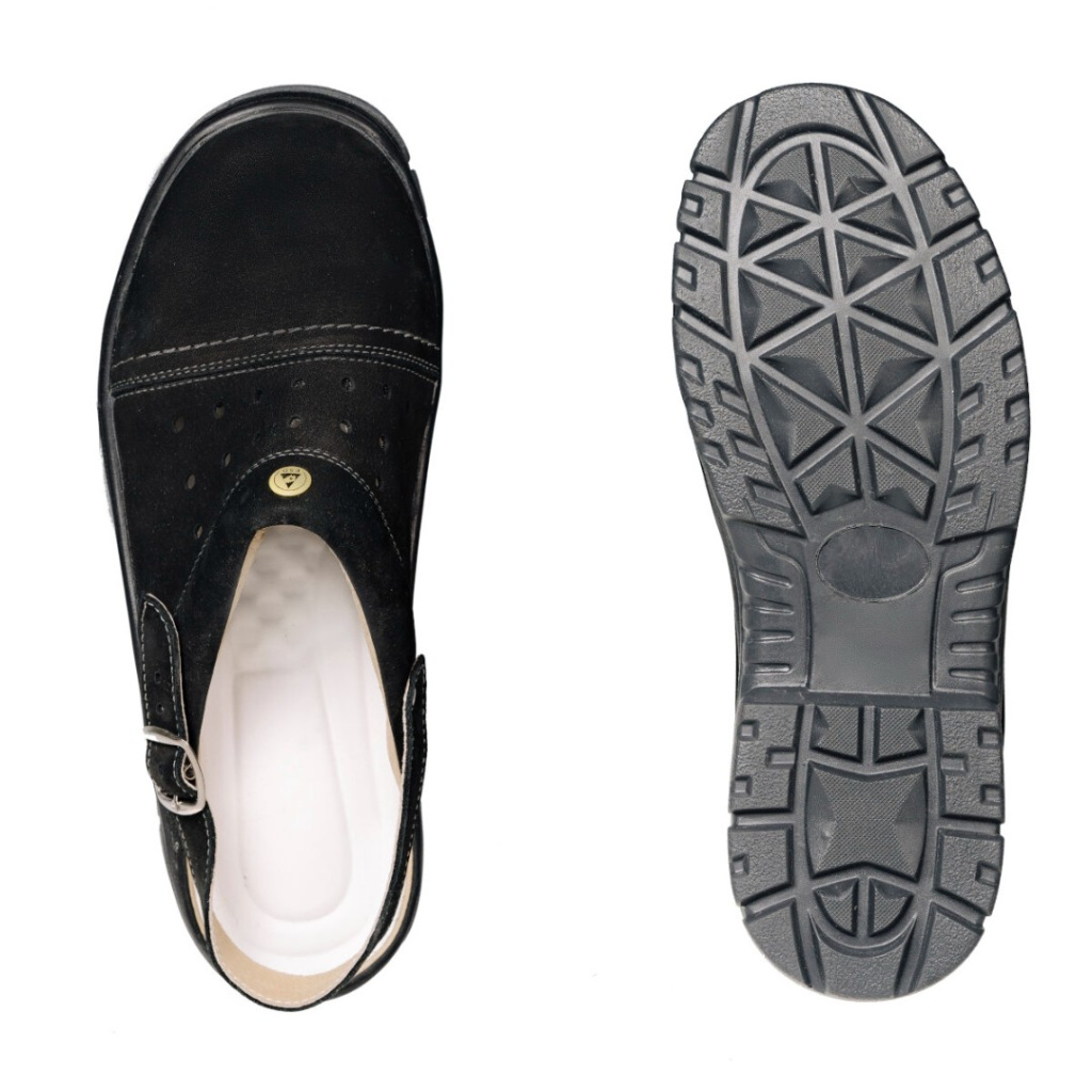 Задник имеет регулируемый ремешок - застежку. Подкладка из натуральной лицевой свиной кожи бежевого цвета толщиной 0,9 - 1,1 мм. Подошва двухслойная из специального антиэлектростатического полиуретана (ESD) с четко заданным сопротивлением между подпятником и ходовой стороной, величина которого находится в пределах 106 - 108 Ом. Помимо антистатических свойств, полиуретан подошвы является маслобензостойким и имеет высокую износоустойчивость. Подошва имеет антискользящий и грязевыводящий, протектор высотой около 2 мм. Метод крепления подошвы - клеевой.