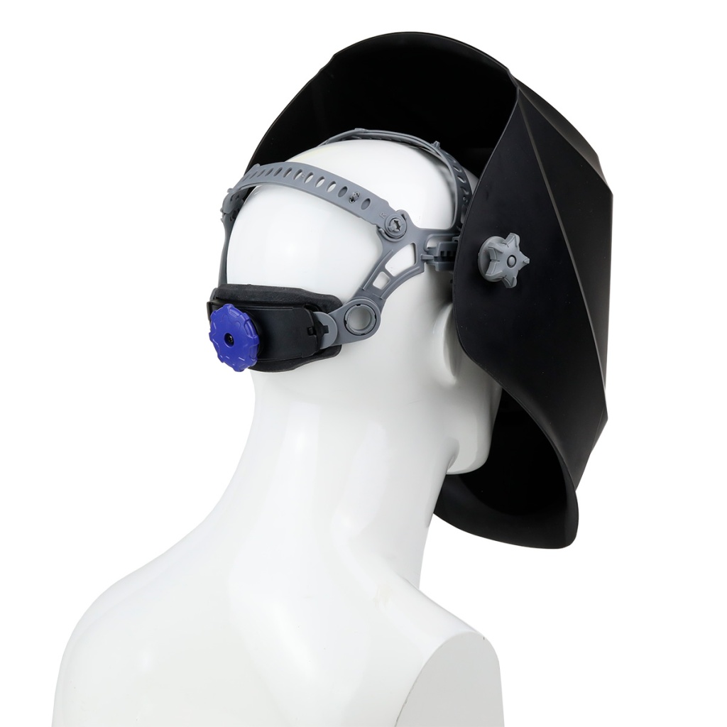 Регулируемая лента оголовья в теменной области головы для регулировки высоты посадки защитного щитка сварщика.